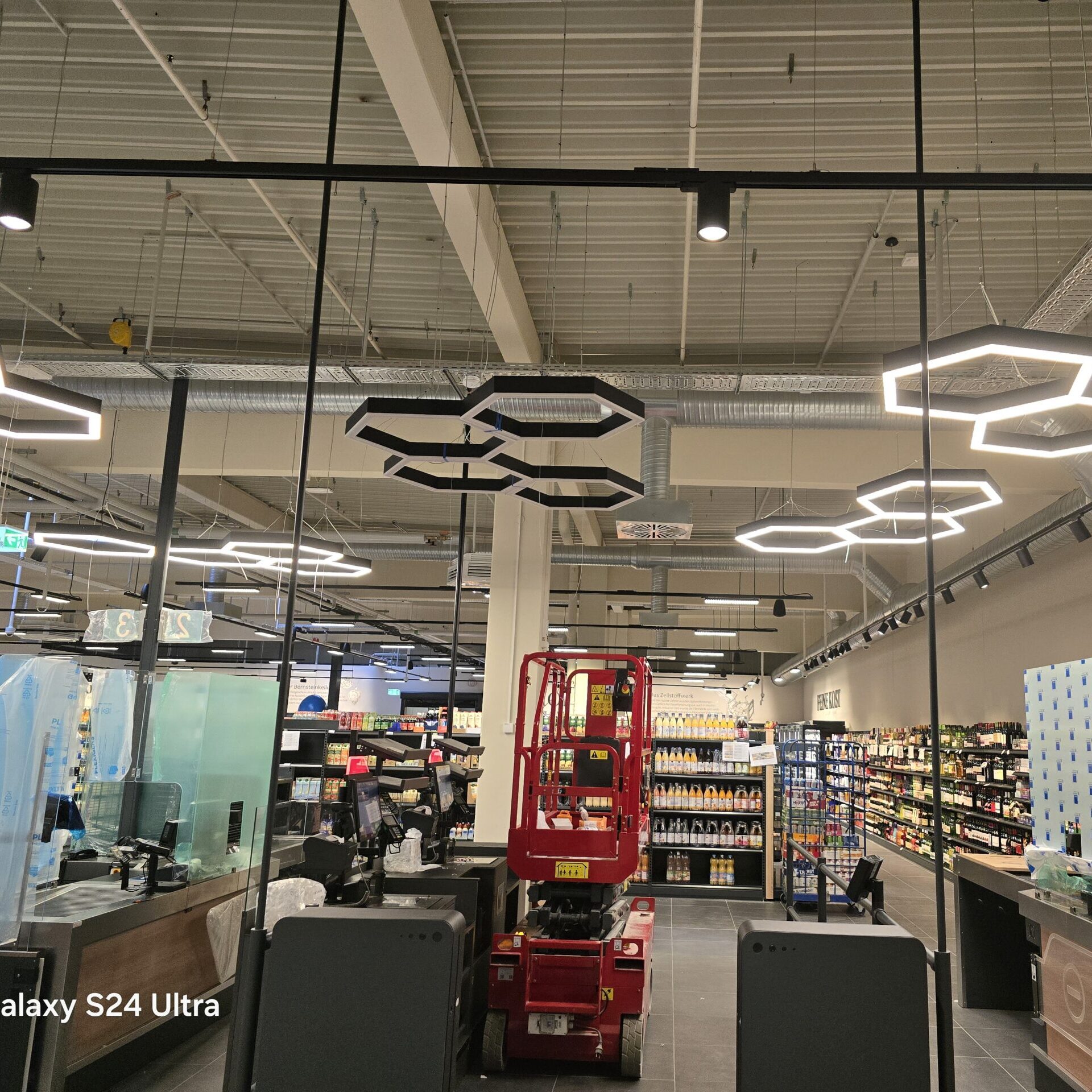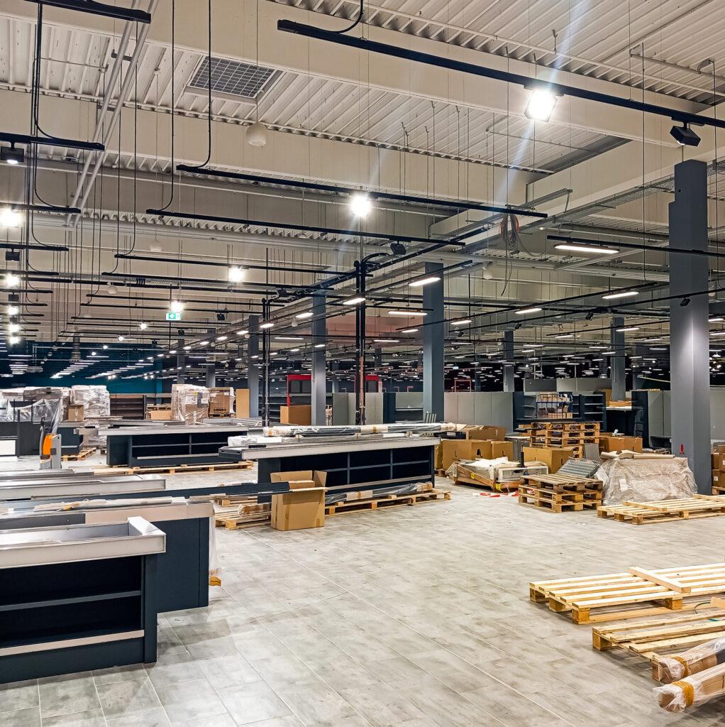 We are an electrical installation company specializing in commercial and retail facilities. Our team delivers professional cable routing, lighting installation, and electrical infrastructure for modern buildings. Below you can see examples of our work